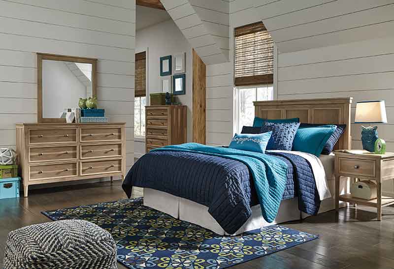 Once you fill your bedroom with the furniture essentials- bed, dresser, nightstand- you may find you’ve already filled up most of the room. The secret to putting it all together without making your bedroom feel cramped or cluttered? Play with proportions!