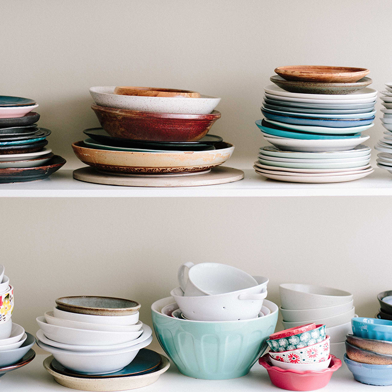 To start, make sure all the plastic tupperware containers you own have a lid. Then assign each cabinet a purpose; which cabinet will hold what. For example, place all drinking glasses together in one cabinet, all plates and bowls into another, utilize drawers for smaller items like utensils, and place pots and pans in a separate cabinet. Making sure your dinnerware is organized and at arm’s reach will make cooking quick and efficient.