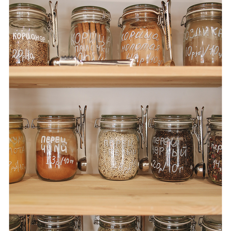 One great tip on how to organize your kitchen in an Eco-friendly way is to use glass containers. You can use glass jars for nuts, spices, fresh food, cereal and more! They’re transparent so you can easily find what you’re looking for among the abundance of other food. Keep your kitchen fresh with stylish jars!