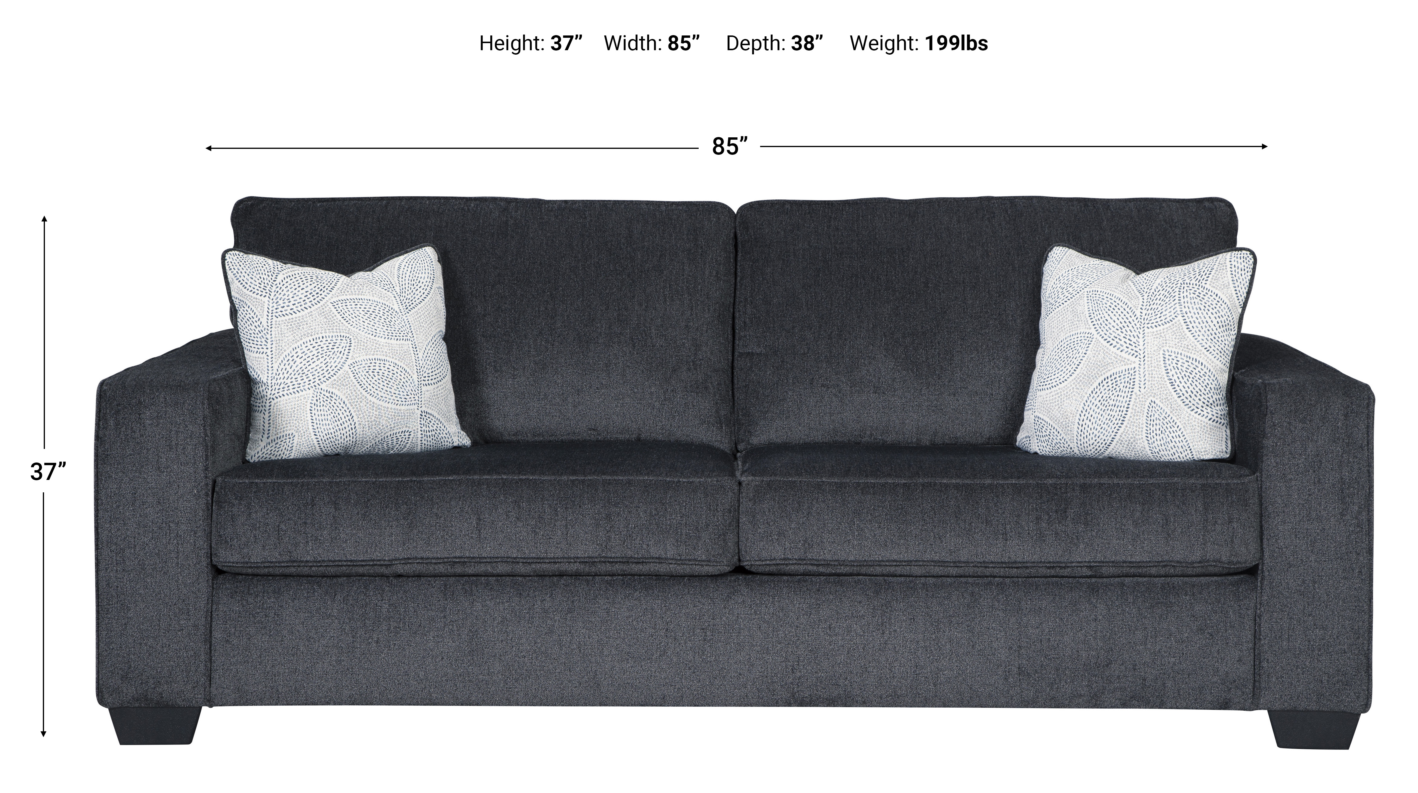 Take note of what you’d like to fit in your space, such as a sectional, or a loveseat and sofa. Most sectionals can range from 90 inches to 150 inches. To get a better understanding of the size of a piece of furniture in your space, grab a tape measure and some painter’s tape. Then measure and tape out the dimensions of the furniture you’re considering to see what it would look like in your space. The most important measurements to consider are the width and depth. The width is how long your furniture will be and the depth is how far it will stick out from the wall.