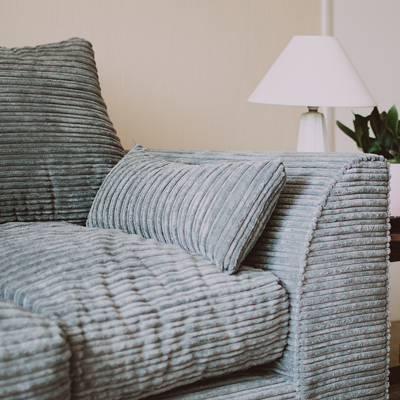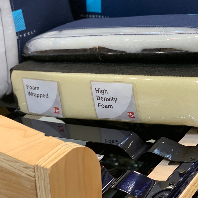 Now, the most important part of what’s in a sofa is the cushion filling, right? It’s the sofa component that our bodies have the most direct contact with and is a key factor when determining whether or not to purchase a sofa. There are multiple cushion filling types that each vary in price and quality. Foam holds its shape and comes in multiple densities, making it a versatile piece for comfort. And since it avoids using feathers or loose fibers, there’s no fluffing needed!